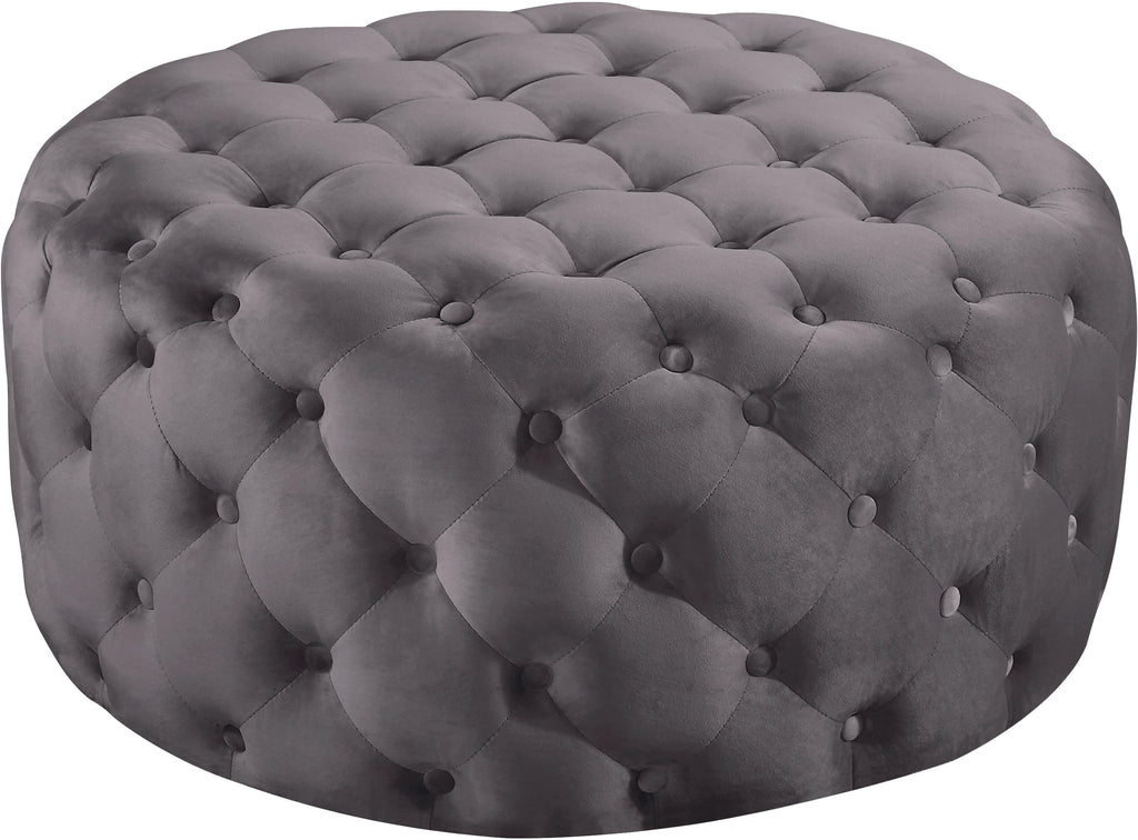 Rest weary legs at day's end atop the welcoming comfort of this Addison grey velvet ottoman. This Hollywood-inspired ottoman features deep button tufting from top to bottom for a luxe look and is covered in velvety upholstery for added glam. The vibrant grey color makes a bold statement in your space. This substantially sized ottoman also doubles as an extra seat and is padded thickly for supreme comfort.