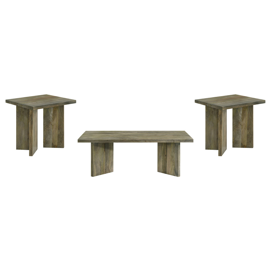 This coffee table set, crafted from solid mango wood, brings the rustic charm of the natural world into your living space. Featuring large, sturdy planks and a minimalist design, the cocktail table and side table showcases the wood's rich grain and organic textures. With robust construction and timeless appeal, the occasional set offers spacious surfaces for decor and utility. A perfect blend of rustic beauty and functionality, it complements both modern and traditional interiors.