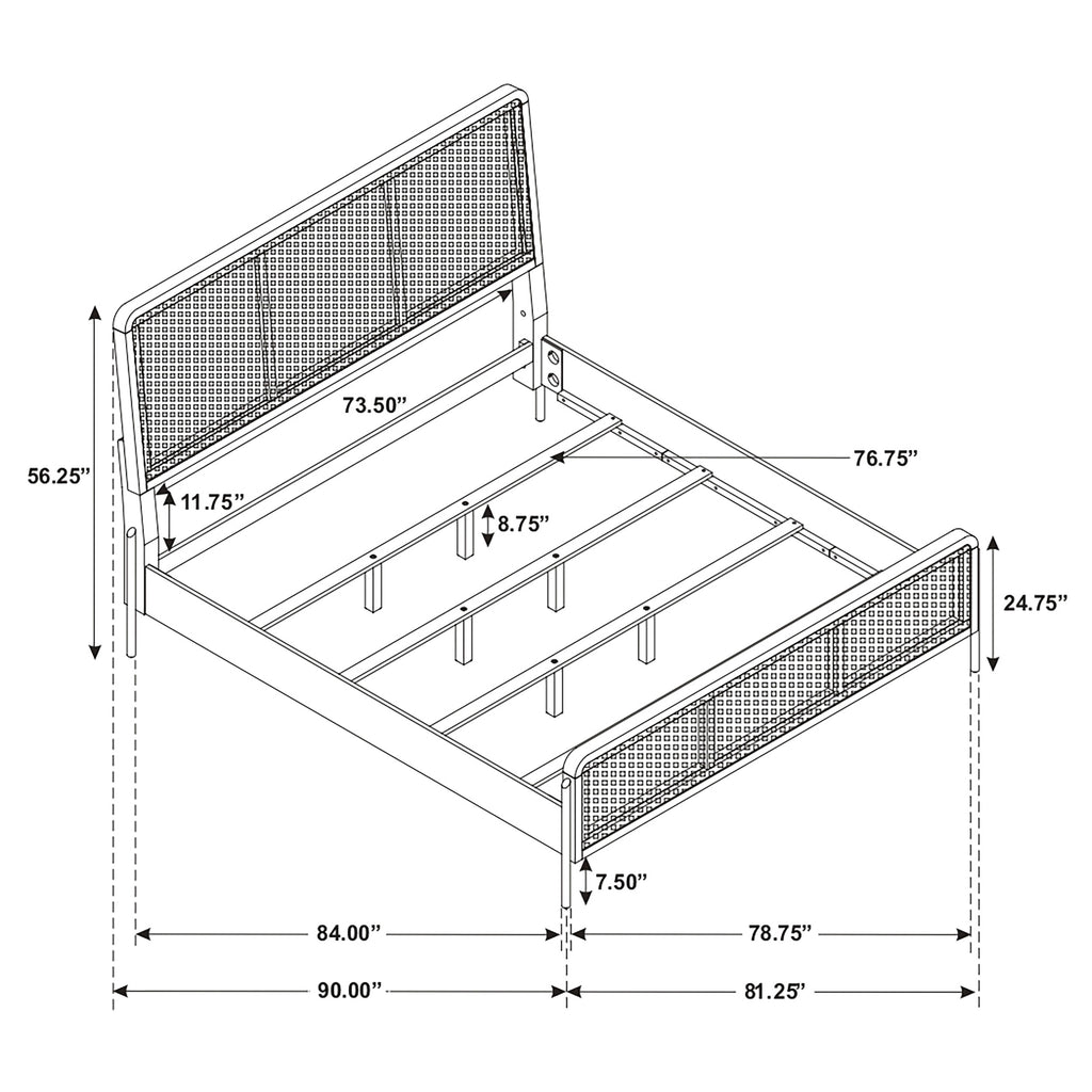 Create a relaxing atmosphere with the clean lines and neutral, wire-brushed, sand wash finish of this coastal bedroom set. A grey fabric padded headrest and footrest along with aged brass hardware throughout each piece offer lovely modern glam accents. Matching storage pieces and round framed mirror complete the set, offering thoughtful touches like felt-lined top drawers and a built-in tray.