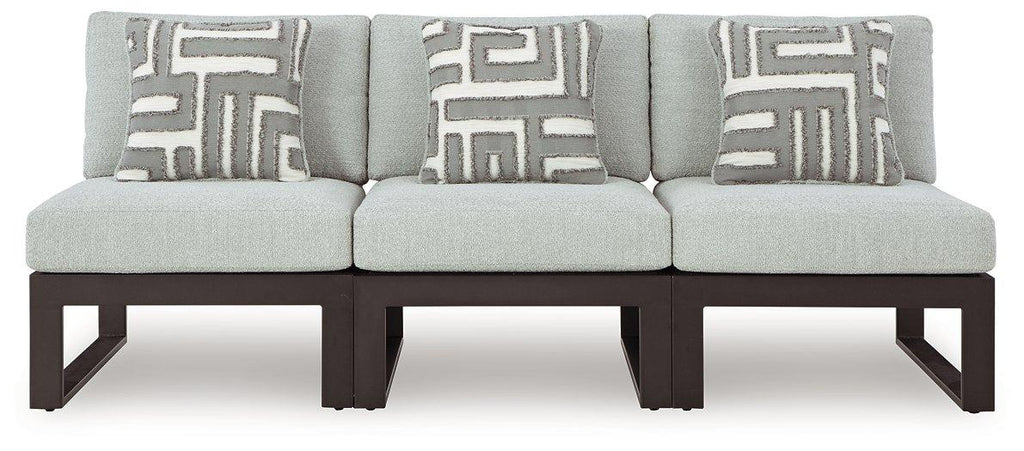 Sleek, contemporary style meets outdoor living in this sectional. Its clean-lined black aluminum frame and resin wicker back expertly balance good looks and longevity. The enhanced UV resistance of Nuvella+™ fabric keeps the cushions light and bright, weathering the seasons beautifully. And the modular design allows you to switch up the layout when it’s time for a refresh. With this sectional on the back porch or poolside, you can confidently curate a luxe vibe.