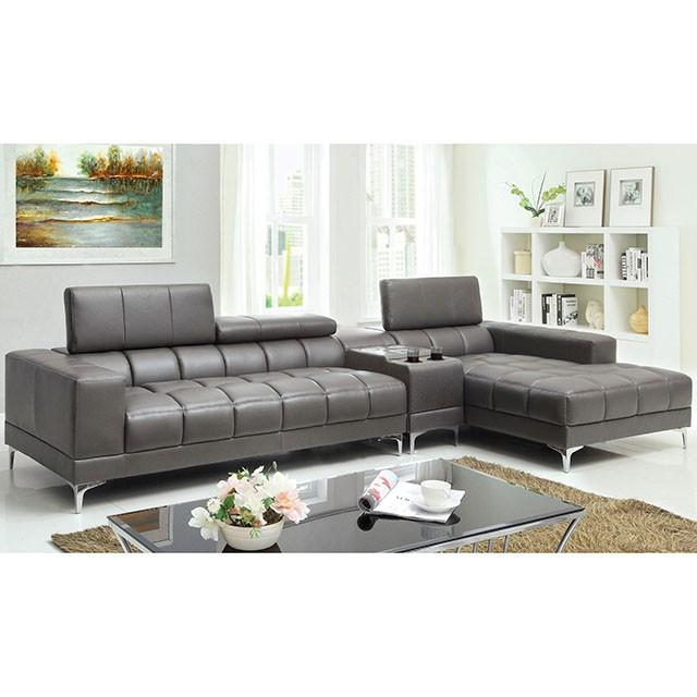 This optional center console with bluetooth speakers can allow you to play all of your favorite music wirelessly in your living room. Gray bonded leather match.