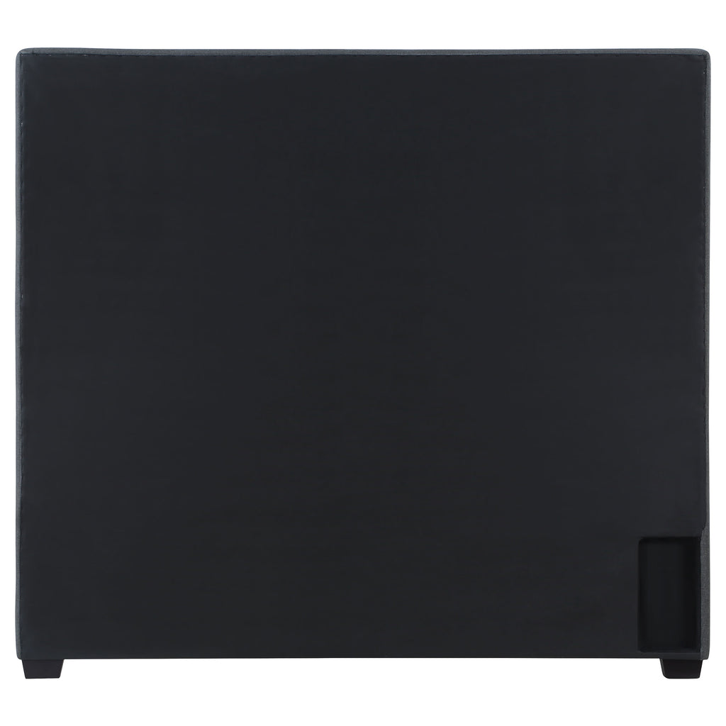 Treat a master or bedroom suite to the ultimate in Art Deco flavor with a plush, enticing panel bed. Designed to infuse romance and artistry, this decadent bed is wrapped in charcoal linen-like fabric. Its construction features a mix of hardwoods and wood products. An extra tall headboard presents a showcase vibe with a scalloped pattern created using individually hand-driven nail heads as an outline. Matching padded side rails and footboard complete the exquisite ambiance of a must-have anchor piece for a glam boudoir.