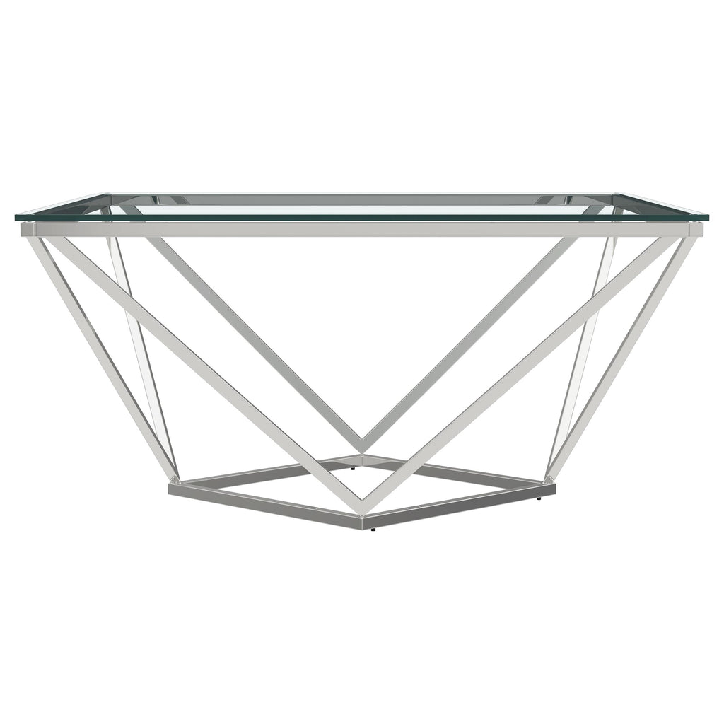 This modern coffee table set features a bold geometric design, combining polished nickel-finished steel bases with clear tempered glass tops. The tempered glass surfaces are scratch-resistant and easy to maintain, making them ideal for everyday use. The open-frame design enhances the airy, contemporary aesthetic, perfect for minimalist or industrial-inspired interiors. Crafted with durable materials and an elegant design, this set brings style and functionality to any modern living space.