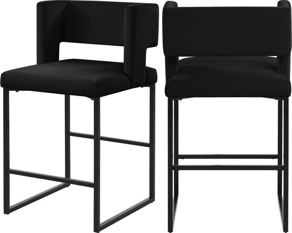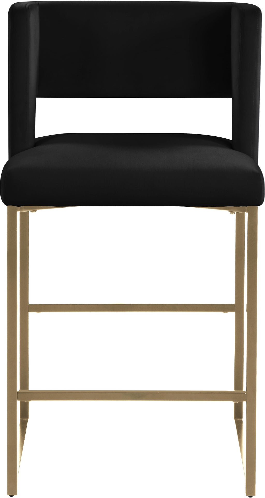 Add the Caleb black velvet dining chair to your dining room for the ultimate in comfort and style. This chair has a square seat and low back which is open at the bottom to the rear and on the sides. Four brushed gold square iron legs provide support and stability, while the chair's soft velvet and cushioning offer an air of luxury. Several available tables make a perfect companion to this contemporary piece.