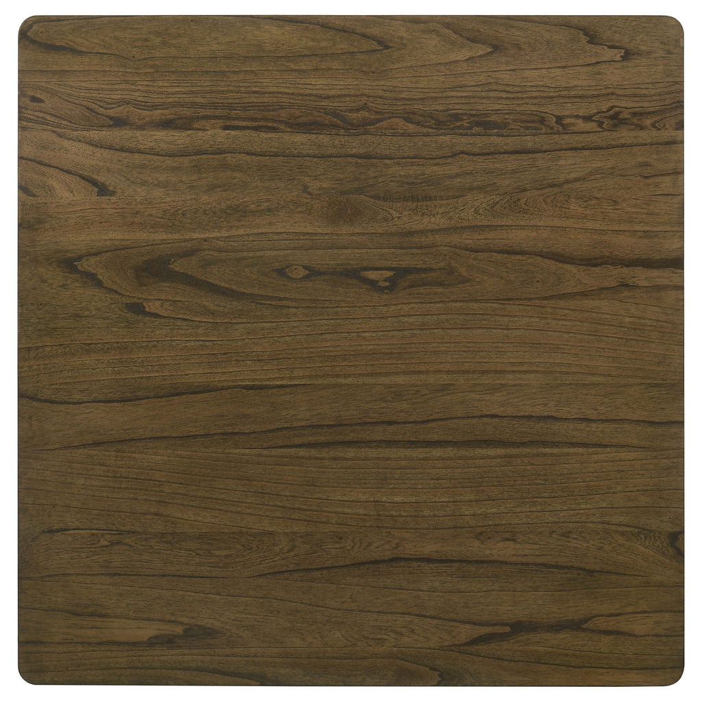 Elevate your dining space with this 47-inch square counter height dining table, perfect for creating a cozy yet stylish dining area. Crafted with engineered wood, hardwoods, and finished with a beautiful mindi veneer, this table showcases natural wood striations that add depth and character to the design. The rich grain patterns of the mindi veneer lend a unique and organic touch, making this table both functional and visually appealing. Its sturdy construction ensures lasting durability for all your meals and gatherings. Perfect for casual or formal settings, this table brings warmth and charm to your home.