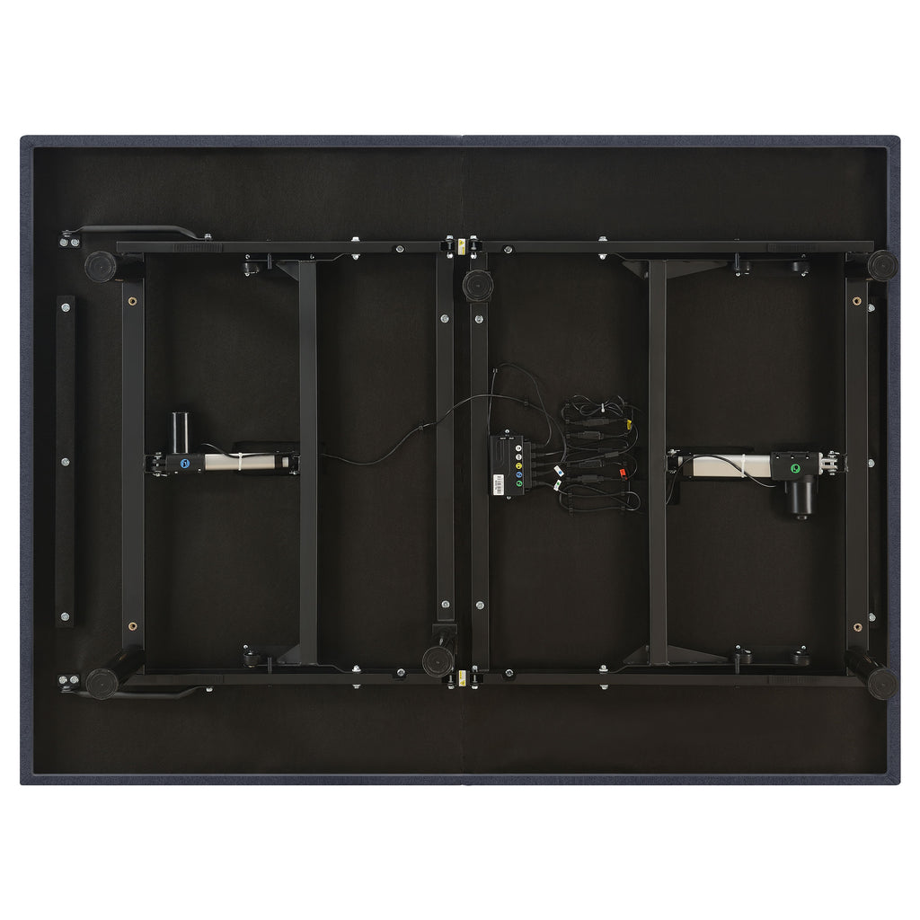 A contemporary California king adjustable bed allows you the freedom of precise positioning to create the relaxing sleep haven of your dreams. Dark gray upholstered rails add a polished touch while six legs adjust in height to suit any bedroom. The bed includes a wireless remote control with pre-set zero gravity, anti-snore, flat and memory positions, in addition to full range head and foot recline. The adjustable bed base is designed for optimal comfort and support, perfect for everything from relaxing with a movie to soothing aches and pains with the position that feels best for you. A stand-alone headboard (not included) may be mounted to the base to create a complete bedroom ensemble and the bed base features power-down functionality in the case of a power failure.