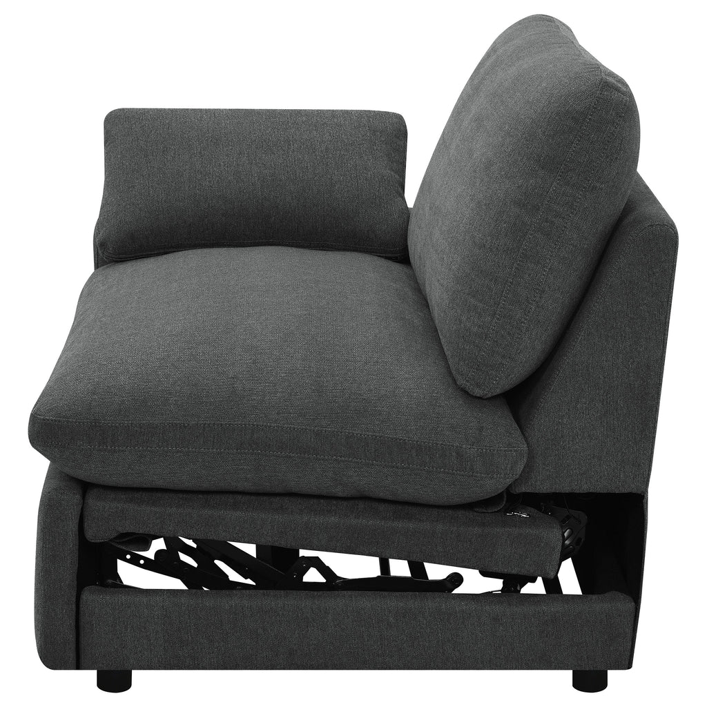 Start off your modular sectional with the LAF power recliner, designed for ultimate comfort and style. This left arm facing power recliner features a sleek, modern design and includes a plush pillow for added comfort. The premium down-like filled cushion provides a luxurious feel, while the power reclining function offers customizable relaxation.