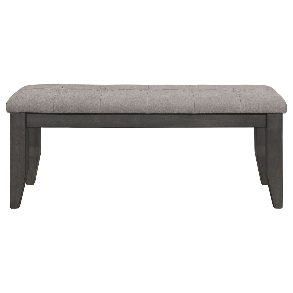 A versatile addition to any dining space, this dining bench offers both stylish seating and space-saving functionality. The solid rubberwood frame provides lasting durability, while the padded seat ensures comfort. A button-tufted design adds a sophisticated touch, while the sturdy legs provide reliable support. Designed for casual and formal dining spaces alike, this bench is perfect for families, guests, or everyday use, and easily tucks under the table when not in use.