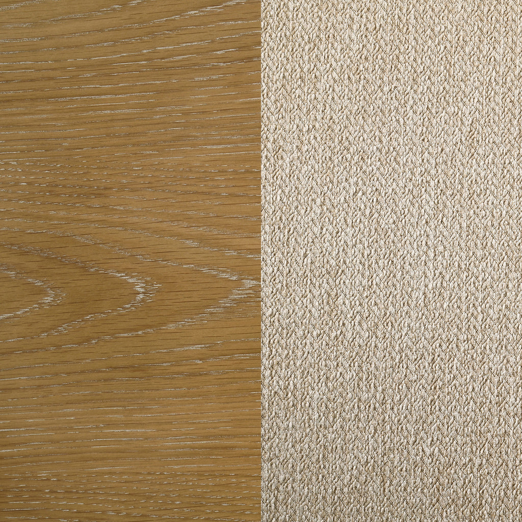 Put finishing touches on an inviting kitchen or dining room table with a set of two modern farmhouse dining chairs. Each boasts an armless silhouette with a ladder back design that adds timeless character. The warm brown oak wood grain finish is classic, ensuring an inviting presence in your space. The chairs are complete with foam padding over their seats, covered in latte finish upholstery. Choose these chairs to enhance a welcoming kitchen table.