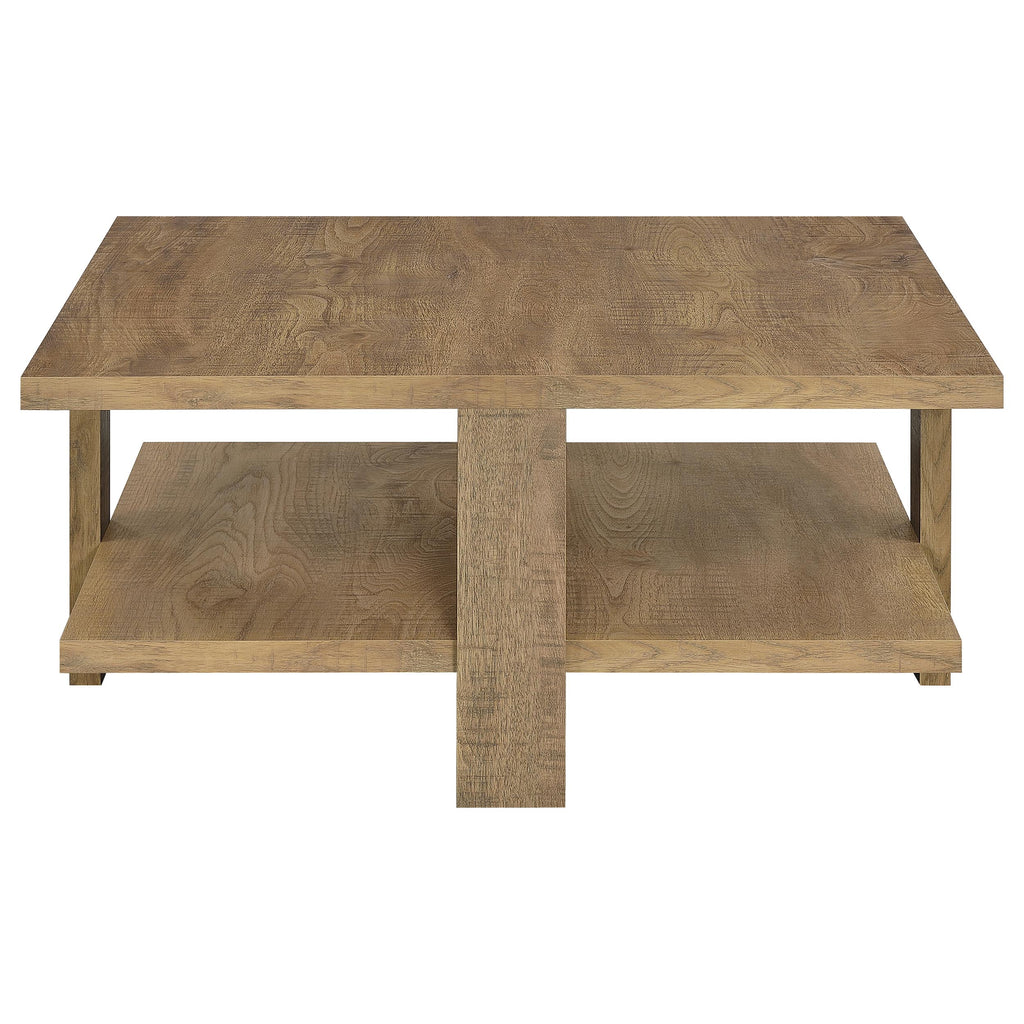 This coffee table set features a perfect blend of clean lines and natural beauty. Each table in the set is crafted from engineered wood with a mango finish and a rough sawn texture, offering two practical surfaces. The wide, board-like legs enhance the linear design, adding a rustic touch. Designed with versatility in mind, this set offers ample space for display, serving, or storage while bringing earthy charm and modern functionality to any living room.
