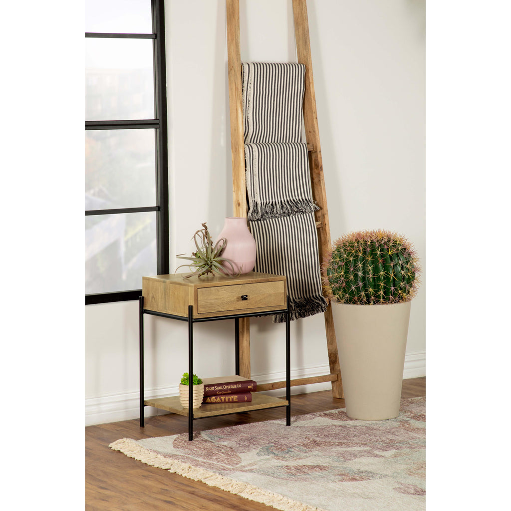 Declan 1-drawer Accent Table with Open Shelf Natural Mango and Black