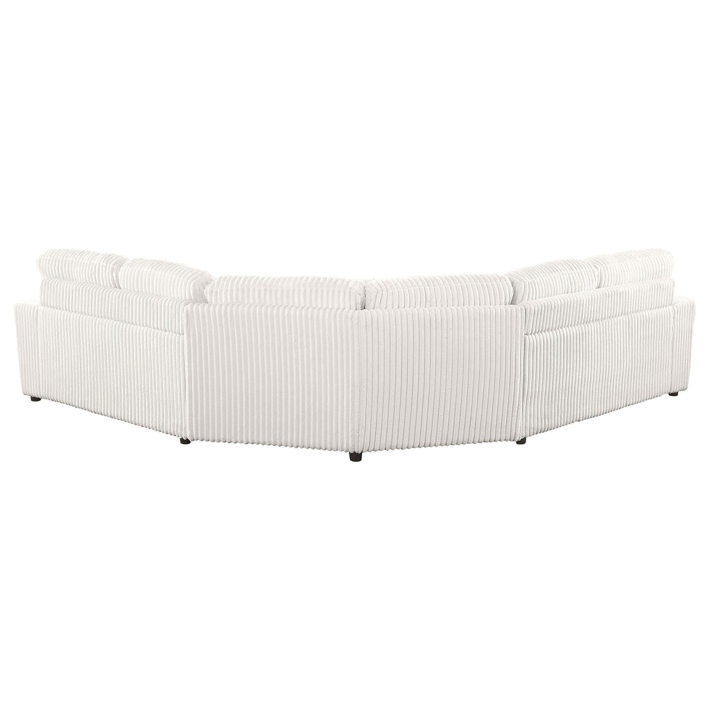 Sink into luxurious comfort with this spacious 3-piece sectional sofa, designed to transform your living area into a cozy retreat. Upholstered in soft, ivory wide corduroy, the sectional offers a plush, fur-like texture that invites relaxation and warmth. With its generous seating capacity, it’s perfect for family gatherings or entertaining guests, providing ample room for everyone. Featuring attached seats for a streamlined look and reversible back cushions for easy maintenance, this sectional balances style and practicality. The black legs add a modern touch, complementing the elegant ivory corduroy and making it an ideal centerpiece for any large, stylish living space.