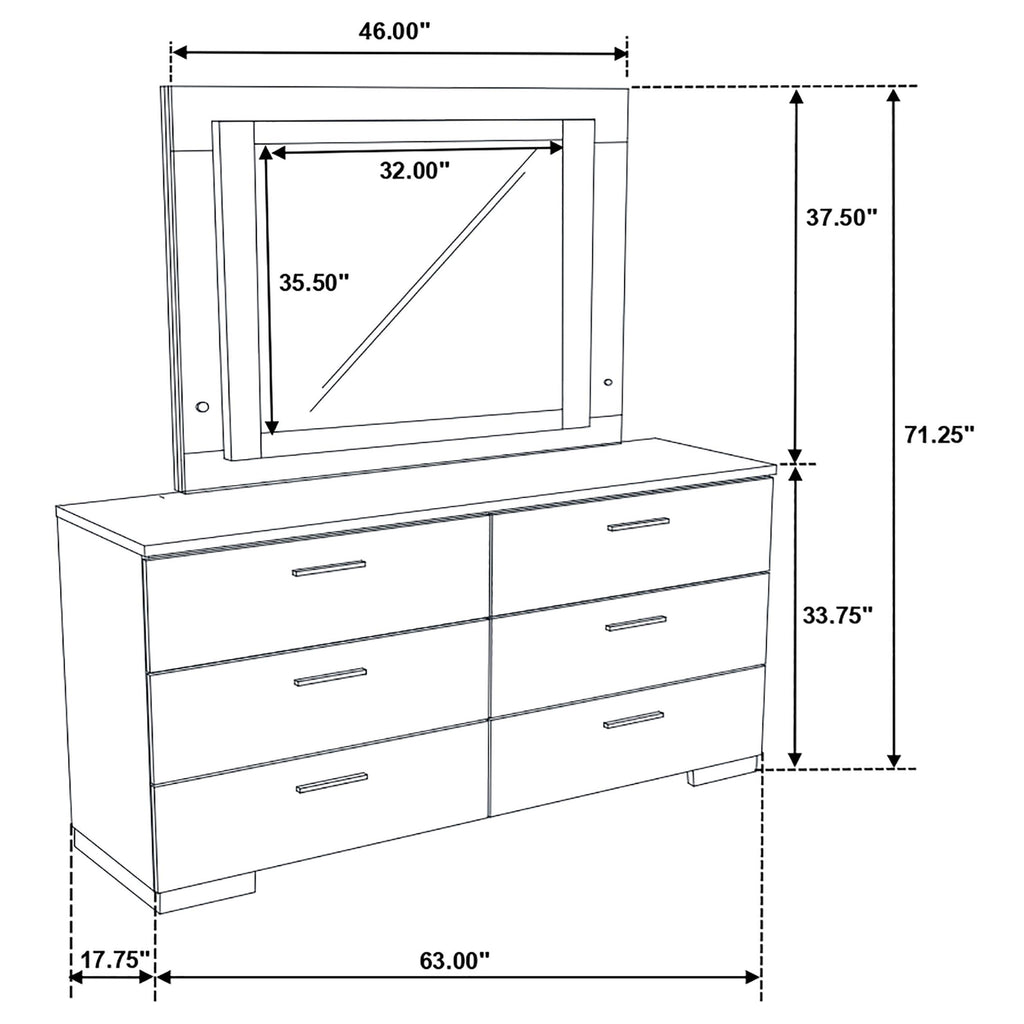 Felicity 6-drawer Dresser with LED Mirror White High Gloss