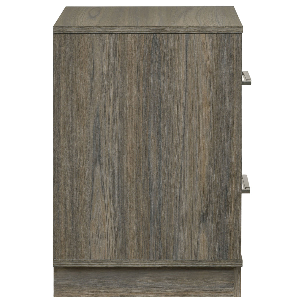 Enhance your bedroom with the perfect blend of style and functionality with this contemporary nightstand. Featuring a sleek two-tone melamine design, this nightstand offers a modern aesthetic that complements any decor. The two spacious drawers provide ample storage for your bedside essentials, each equipped with smooth metal extension glides and pin construction for durability. Antique nickel handles add a touch of elegance, while the floating base design ensures stability and a chic appearance. This nightstand is crafted from durable melamine and engineered wood, ensuring it will be a lasting addition to your bedroom.