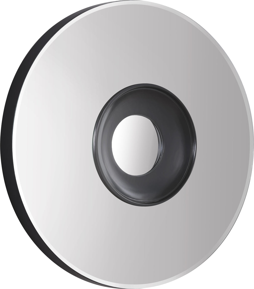 Go for out-of-this-world style when you hang this silver Galaxy mirror in your home. This eye-grabbing mirror features a discus design with a definitive geometric slant to bring oodles of contemporary charm to your wall. Its modern matte black finish melds nicely with lots of different contemporary d?�cor items you already own, making this piece a must for your room. This oversized mirror measures 3 foot by 3 foot, so it garners maximum visual oomph on your wall.