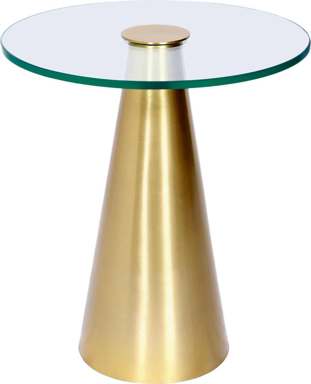Catch the eye in an instant with this Glassimo end table. This beautiful table features an elegant design that���s destined to garner its fair share of oohs and ahhs from everyone who sees it. The glass top allows full view of the brushed gold finish, making this metal table a show stopper from every angle. It���s chic and sleek on its own, or pair it with the matching Glassimo coffee table for even more stares.