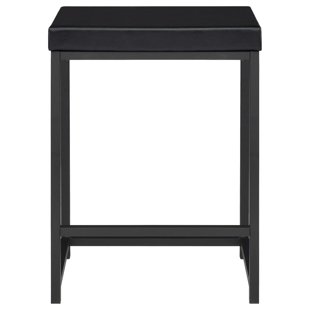 When space is at a premium, this modern four-piece counter height dining set does everything you need and more, easily serving as dining table, workspace, or homework spot. It features clean, crisp design with straight lines and square corners, all in a black finish that blends into surrounding decor in virtually any setting. The larger table includes a USB port in its top, while the smaller nesting table is on wheels that allow for easy movement to the perfect position for every occasion. Two stools are backless, with plush foam cushions and faux leather upholstery. Built in footrests offer added comfort and support for all to enjoy.