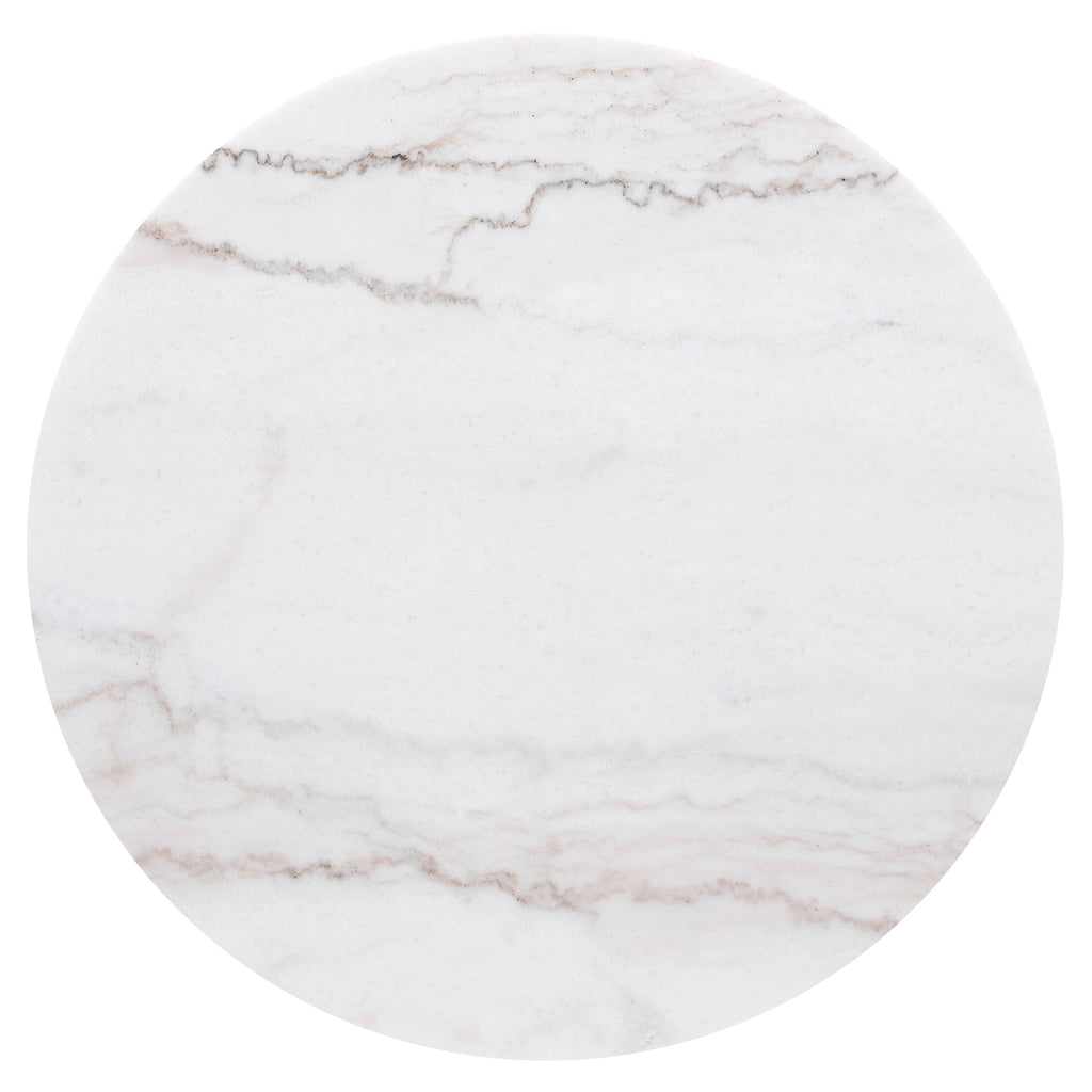 This round end table is the perfect complement to any living room setup. Its genuine white marble top, with delicate veining, brings an element of sophistication to your space. The engineered wood frame in a charcoal finish features ribbed detailing that adds texture and depth, while the brushed gold metal base ensures a luxurious foundation. This versatile side table seamlessly combines modern materials and a stylish design to elevate your home.
