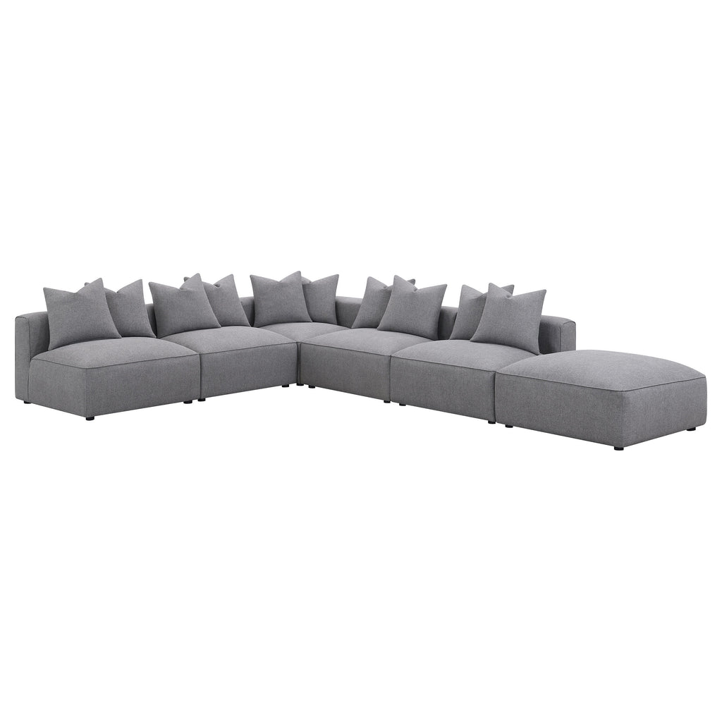 Elevate your modern seating area with this contemporary modular armless chair, upholstered in a soft terracotta trillium polyester blend fabric across its tailored tight back, thick cushion and matching throw pillows. Self-welt trim along the seat edge and backrests offer an elegant finishing touch, along with non-skid grip protectors on the legs. Complete your modular sectional configuration with this additional modular chair.