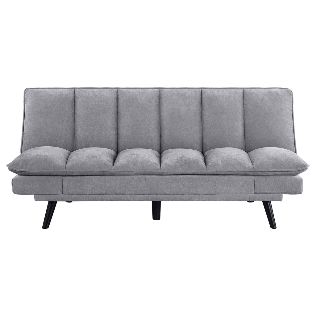 Versatility reigns in a modern sofa bed. Soft upholstery complements perfectly, bringing inviting style to a convertible design. It goes from sofa to bed with a lay-flat mechanism, perfect for a multi-functional space like a home office or compact living room. Tufting adds a sense of structure to the design. Splayed legs receive a black finish, offering a chic look against lighter upholstery.