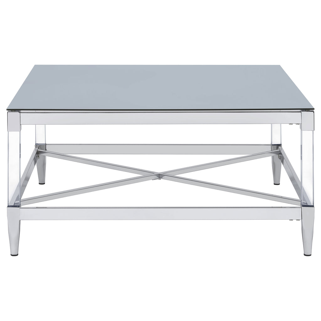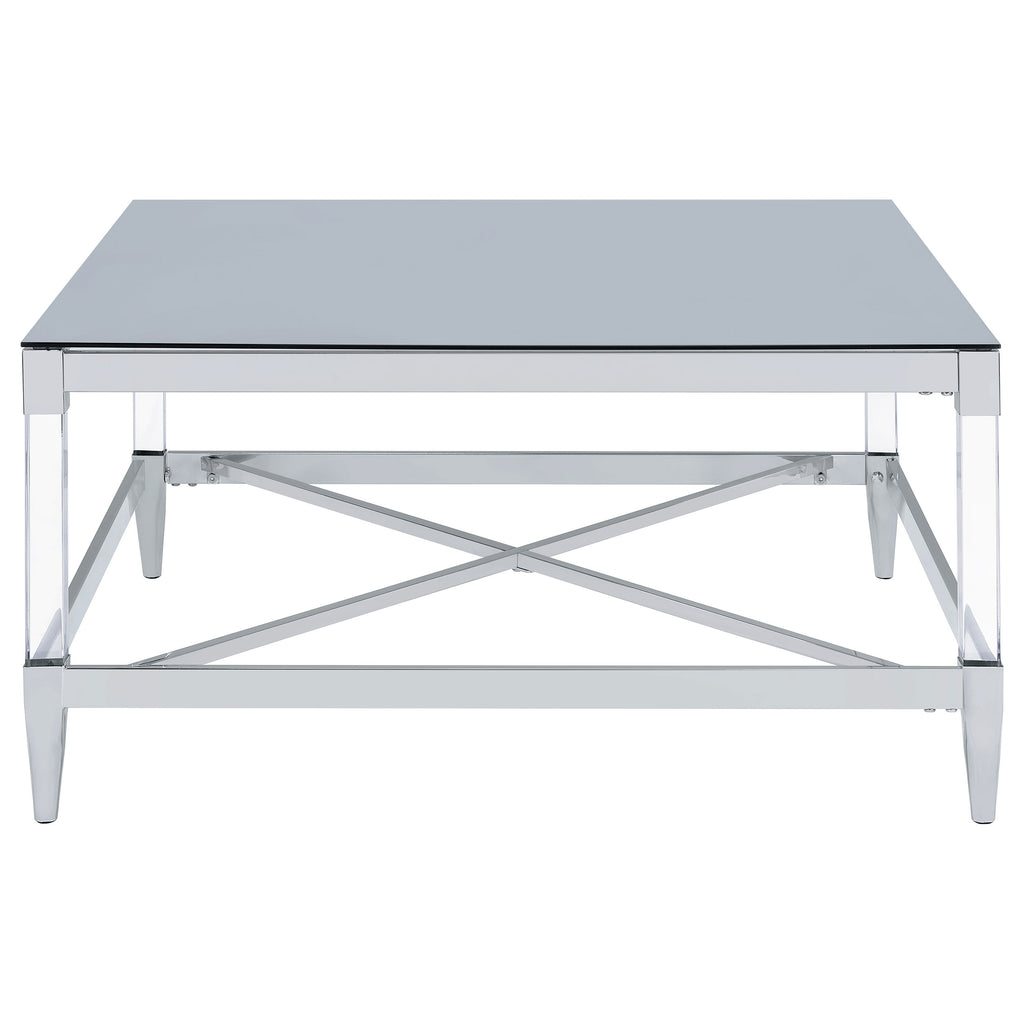 As the centerpiece of your living space, this coffee table exudes sophistication and contemporary elegance. Its square mirrored tempered glass top reflects ambient light and color, creating a vibrant focal point. The chrome-electroplated metal frame showcases sleek lines, complemented by acrylic leg posts that add a floating, modern aesthetic. Anchored by tapered feet, this table combines bold design and refined functionality, making it perfect for modern living rooms.