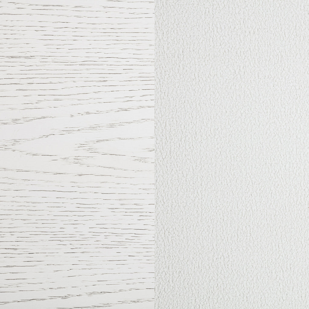 Refresh the look and feel of your bedroom with the inviting character of a modern upholstered bed. The bed features a wood frame in a distressed white finish that highlights its grain details. The headboard is a squared design complete with a padded panel upholstered in white for a monochromatic effect that's clean and contemporary. A low footboard completes the look and creates an open, inviting profile for your bedroom.