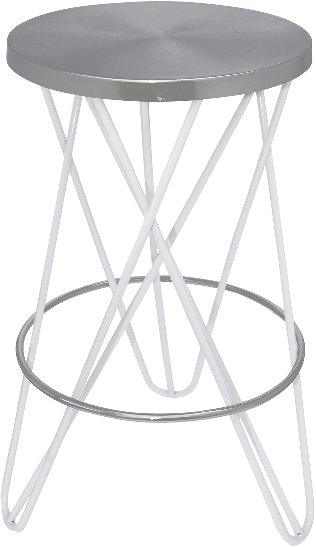 - Brushed Silver Iron / White Powder Coated Counter Height Stool