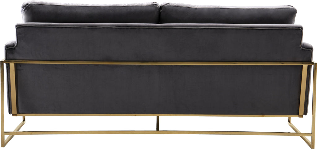 Seat guests in complete luxury on the Mila Grey Velvet Sofa. The bold grey color makes a statement in your space, and the gold stainless steel frame ensures sturdy support while you relax or take a nap. It comes with two throw pillows that cradle your sides as you sit, elevating its comfort level. Lots of clearance beneath this sofa makes cleaning and vacuuming a breeze. Buy it alone or pair it with the matching loveseat or chair!
