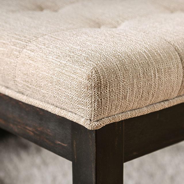 Nerissa Antique Black Dining Table, 84"W X 42"D X 30 1/2"H, 201.52lbs. Enjoy breakfast, lunch and dinner in style and comfort with this stylish dining set! The sophisticated shape of the pedestal pairs perfectly with linen-upholstered chairs and a comfy bench to create a luxurious atmosphere. Scrolled backrests decorate d with button tufts help emanate a regal and feminine style that complements the beautiful antique black color for a chic finishing touch. Features: Rustic Style Trestle Base Chenille Fabric Button Tufted Scrolled Chair Backs Solid Wood, Wood Veneer, Others Antique Black Finish