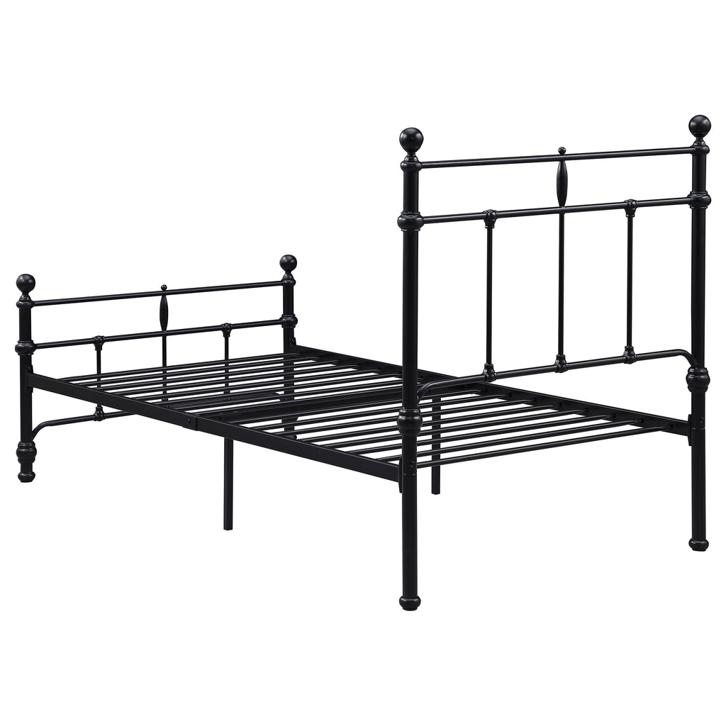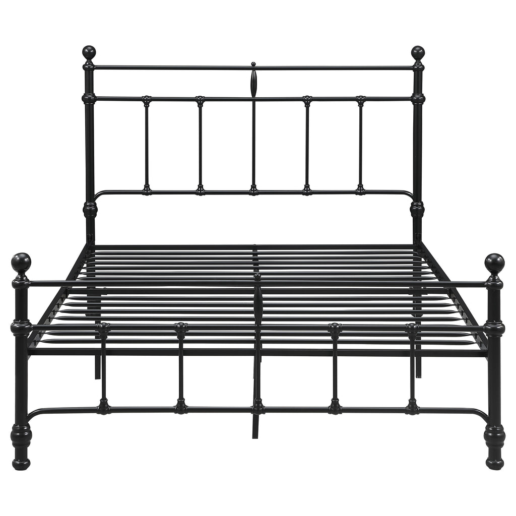 Bring timeless charm and elegance to your bedroom with this beautifully crafted metal bed. Its vintage-inspired design features a sturdy metal frame, complete with intricate detailing on the headboard and footboard, all finished in a sleek matte black powder coating. This finish not only enhances its classic silhouette but also provides a durable, long-lasting surface. Perfect for traditional, rustic, or industrial-themed interiors, this bed combines style with robust construction for lasting support and a comfortable night's sleep. Elevate your space with the subtle sophistication of this statement-making metal bed.