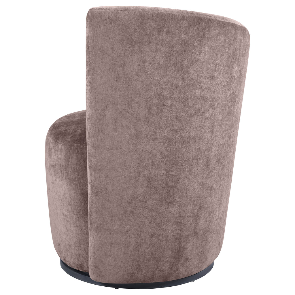 This accent chair’s sculptural silhouette and plush velvet upholstery create a luxurious presence in your living space. Designed with swivel functionality, it allows effortless 360-degree rotation, making it perfect for conversation areas or cozy reading nooks. Its curved backrest and softly cushioned seat deliver indulgent comfort, while the neutral hue ensures seamless integration into various décor