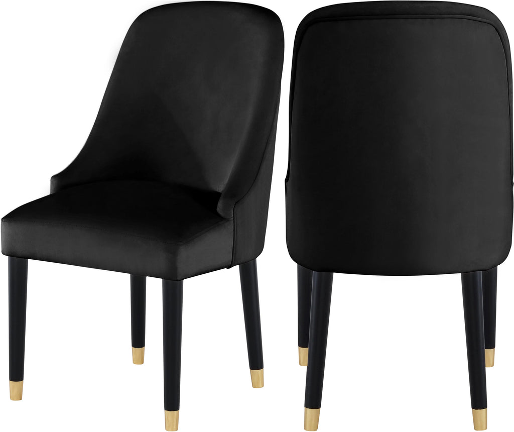 Welcoming comfort awaits you with this Omni velvet dining chair in a soft black velvet design. Upholstered to the hilt in smooth, beckoning velvet, this chair features black wooden espresso legs topped in gold metal tips for a look that���s both elegant and sophisticated. The rounded back and the thick and plump cushions add to the comfort factor of this exceptional seating option.