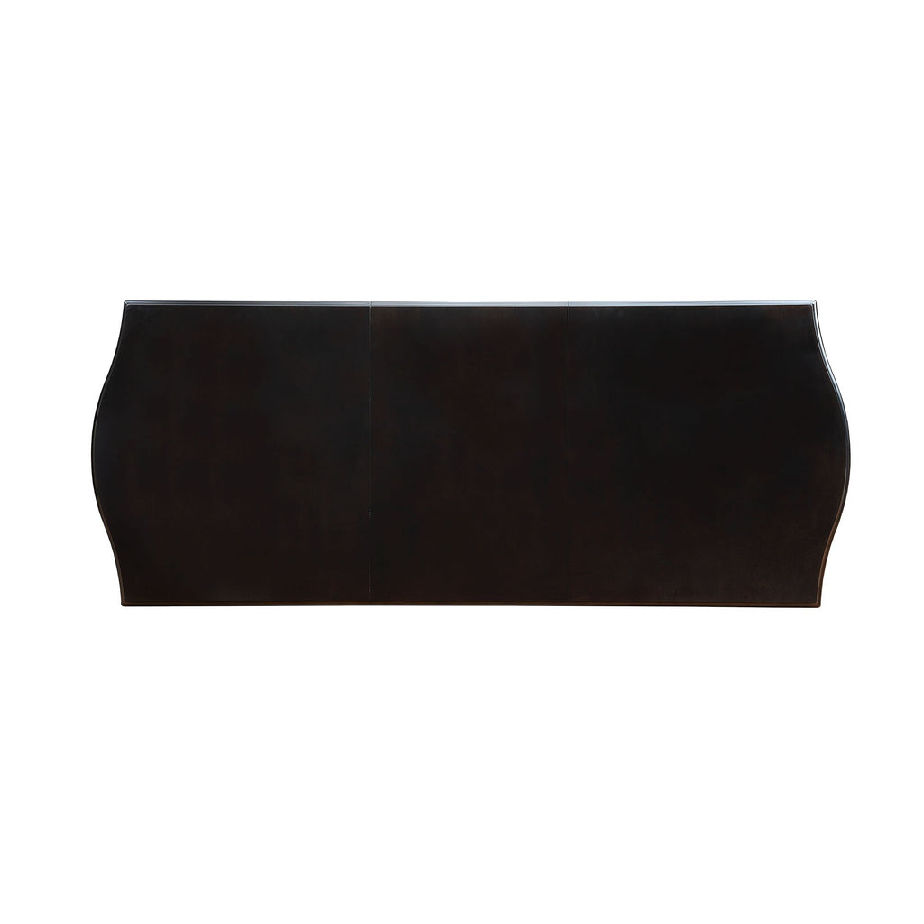 Ornette Espresso/Champagne Dining Table, 106"(84" + 1 X 22"LEAF)L X 45 1/2"W X 30"H, 323.4lbs. Lighten up any dining room without compromising formal elegance! This lovely dining table brings traditional and contemporary together to create an chic piece that will really dress up your dining space. Gently curving legs come together to create a double pedestal base that pairs beautifully with the spacious espresso table top. Don't worry if the guest list grows; the 22-inch expandable leaf will accommodate a large number of people comfortably while scrollback chairs add height and softness. Features: Contemporary Style Double Pedestal Base 22" Expandable Leaf Scrolled Chair Backs Nailhead Trim Solid Wood/Wood Veneer/Others Espresso & Champagne Finish