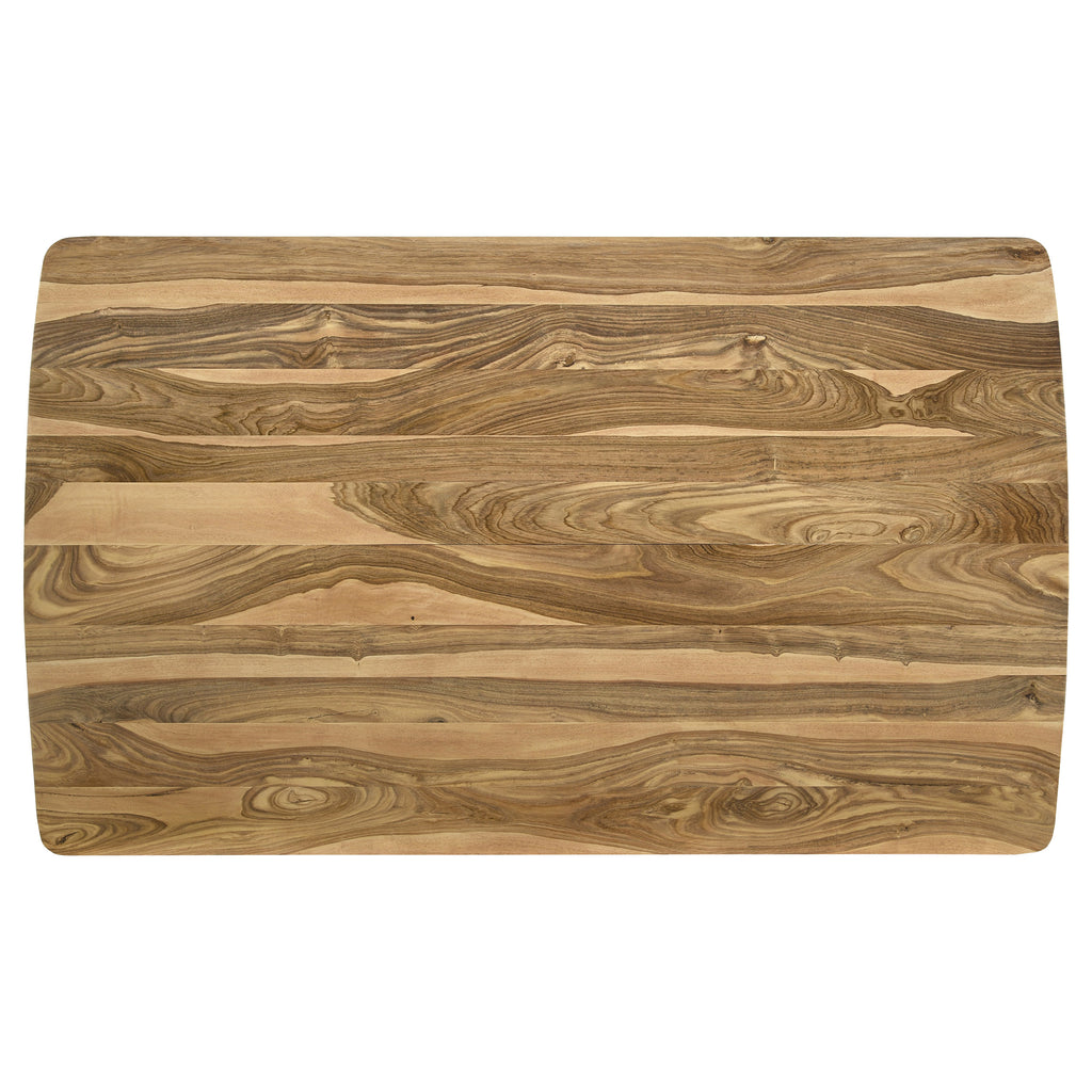 With a hint of ranch inspiration, the design of this five-piece counter height dining set is a brilliant choice for an easy, casual living space. Indulge in a calm vibe with a set anchored by a natural finish sheesham table featuring a spacious rectangular top and tapered, rounded legs. A dark apron with geometric design detail adds an exotic effect. Mid-Century Modern influence adds to four comfortable counter stools with scoop seats and a thick back, both with horizontally channeled leather upholstery. Metal framing features iconic retro slender rounded, splayed legs.
