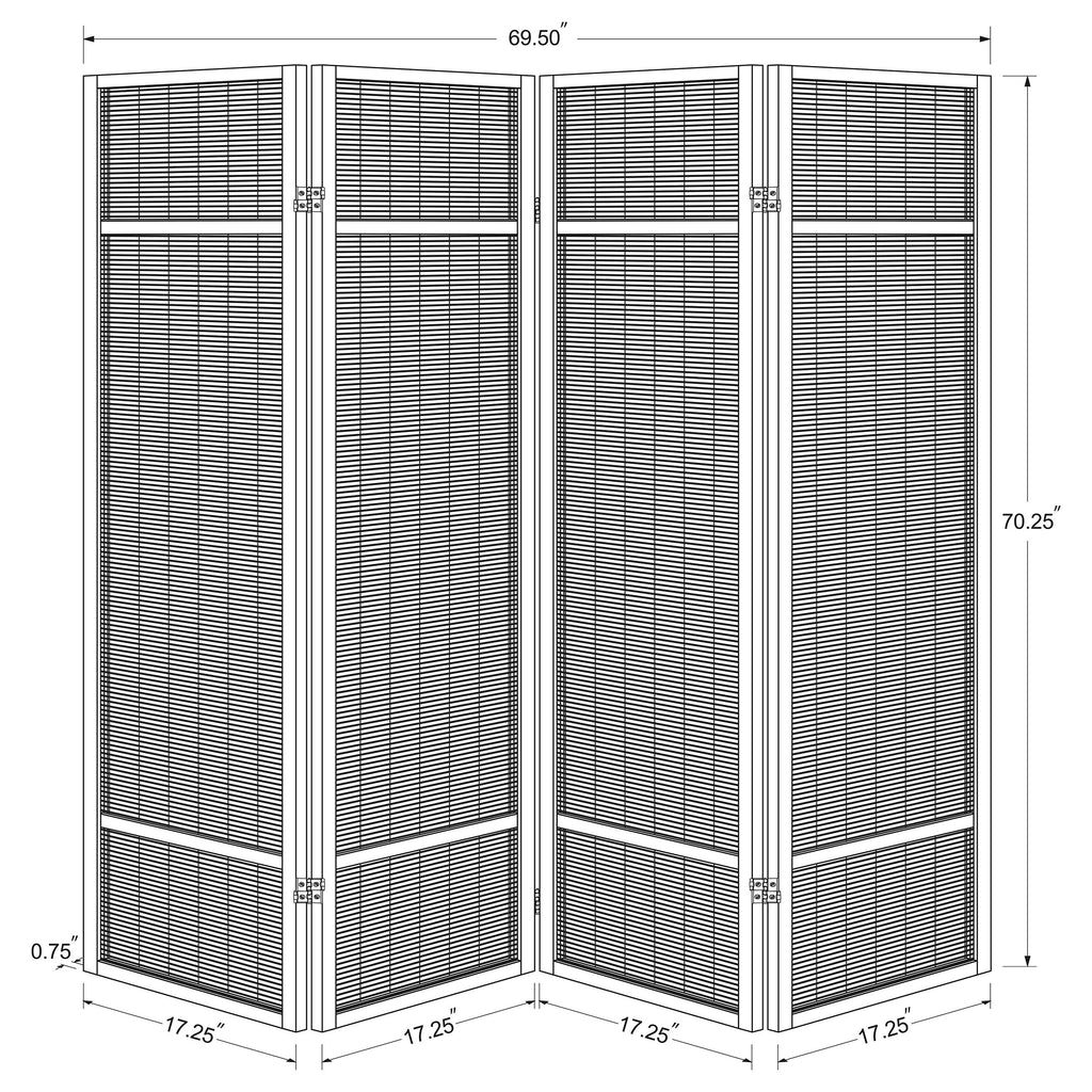 Enhance your space with this four-panel privacy screen, designed to offer both style and functionality. The FSC-certified solid pine wood frame ensures an eco-friendly choice, while the bamboo panels bring a natural, textured look to any room. Perfect shoji folding screen, this divider adds a sense of separation without sacrificing design. Its lightweight, foldable construction allows for easy repositioning wherever you need it. This bamboo room divider effortlessly blends form and function, creating an elegant and versatile solution for your home.