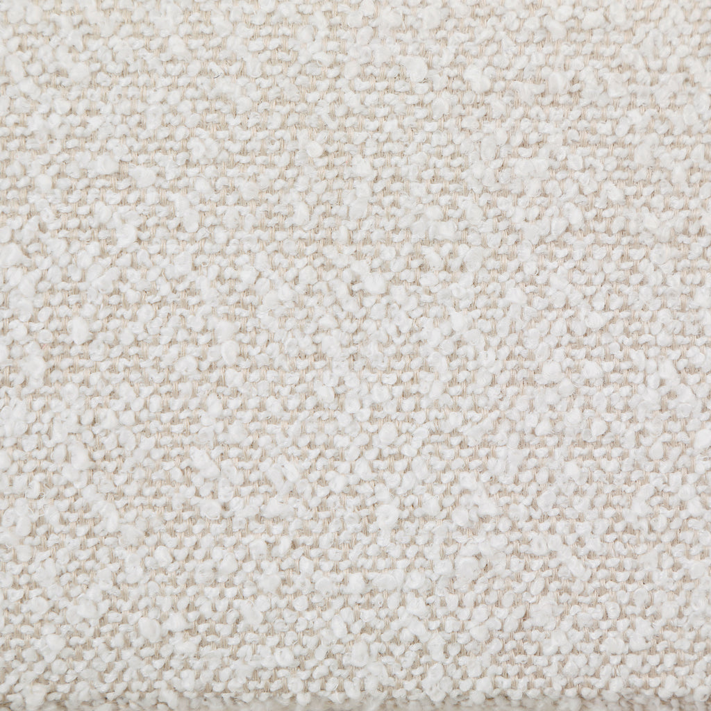 Enveloped entirely in the embrace of plush bouclé, this chair redefines the art of relaxation with its all-fabric design. The seamless transition from the cushioned seat to the curved arms, all robed in the same soft fabric, creates a cocoon of comfort. This chair's silhouette is a gentle wave of tranquility, its form an ode to the curves found in nature. The uninterrupted bouclé upholstery invites a serene tactile experience, transforming the chair into a modern sanctuary. It's a haven of softness, a singular statement of elegance and ease.