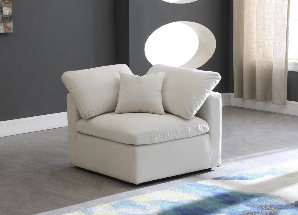 No matter how big or little the size of your gang, they can all find their sweet spot when you choose pieces from the Plush collection to build your ideal seating group. Choose this individual Plush piece or pair multiple pieces together to get the custom look everyone will love. The soft cream velvet material is soft and welcoming to the touch, and the set���s cushions are overstuffed with a down and feather blend to provide ample support for tired bodies.