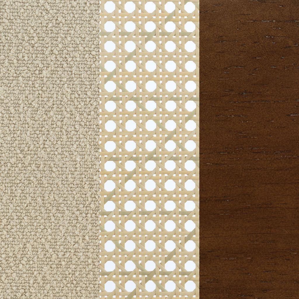 This accent chairs introduces a warm, airy presence to any living area. Lounge chair features a rattan open cane webbing back that breathes natural style and a fabric upholstered cushioned seat for soft, supportive comfort. The solid hardwood frame provides timeless stability. Ideal as occasional chair for reading nooks or side chair in conversation areas, this piece blend casual elegance with functional seating.