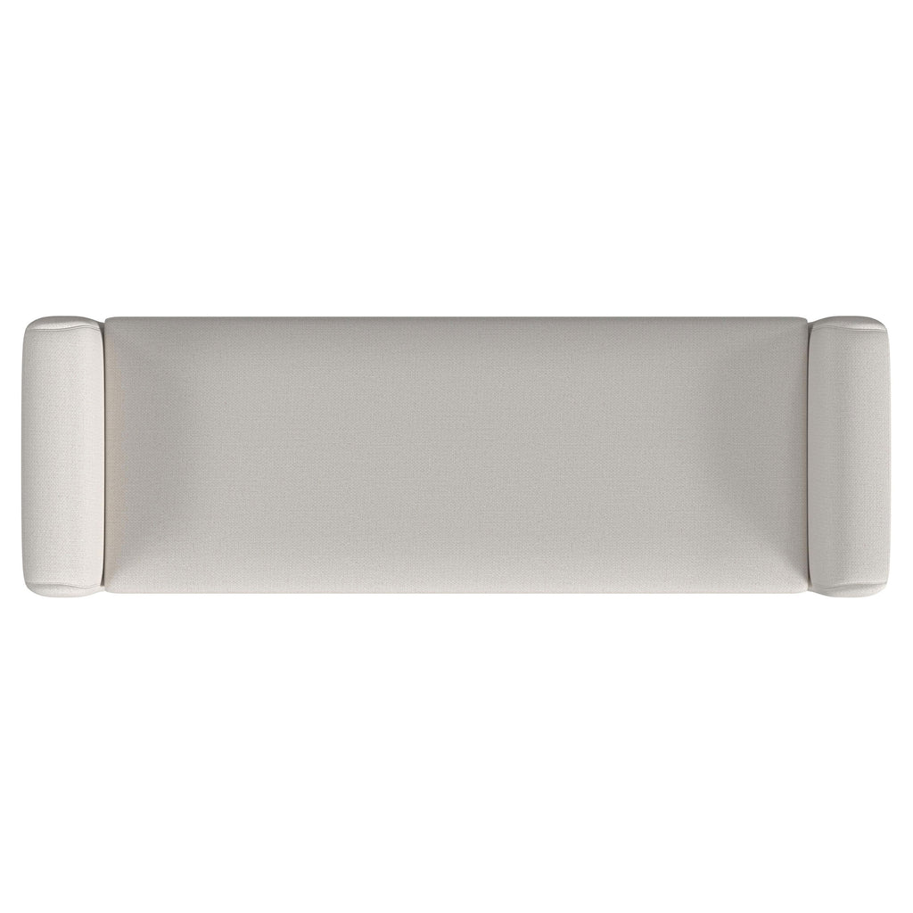 Finishing touches like a modern upholstered bench take your decor from good to great. This bench boasts a backless profile with arms the create a chic, cozy silhouette. The bench seat and frame are upholstered in soft vanilla fabric, creating a neutral palette that brims with elegance. The bench is a charming choice for the foot of your bed or an inviting living area or den, adding seating with a compact footprint. Tall wooden legs receive a black finish to bring the perfect hint of contrast to this striking modern bench.
