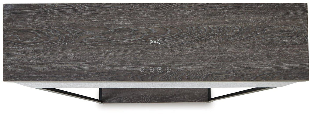 With its decidedly contemporary form, this console sofa table wows with subtly integrated functional features. Wirelessly connect your audio to its built-in speakers for ambiance as you host guests or relax solo. Need to charge up as you lounge? Rest this console against the back of your sofa to keep its wireless and USB charging options in reach. The table's spacious top and lower shelf leave plenty of room to customize the look with your favorite decorative accents.