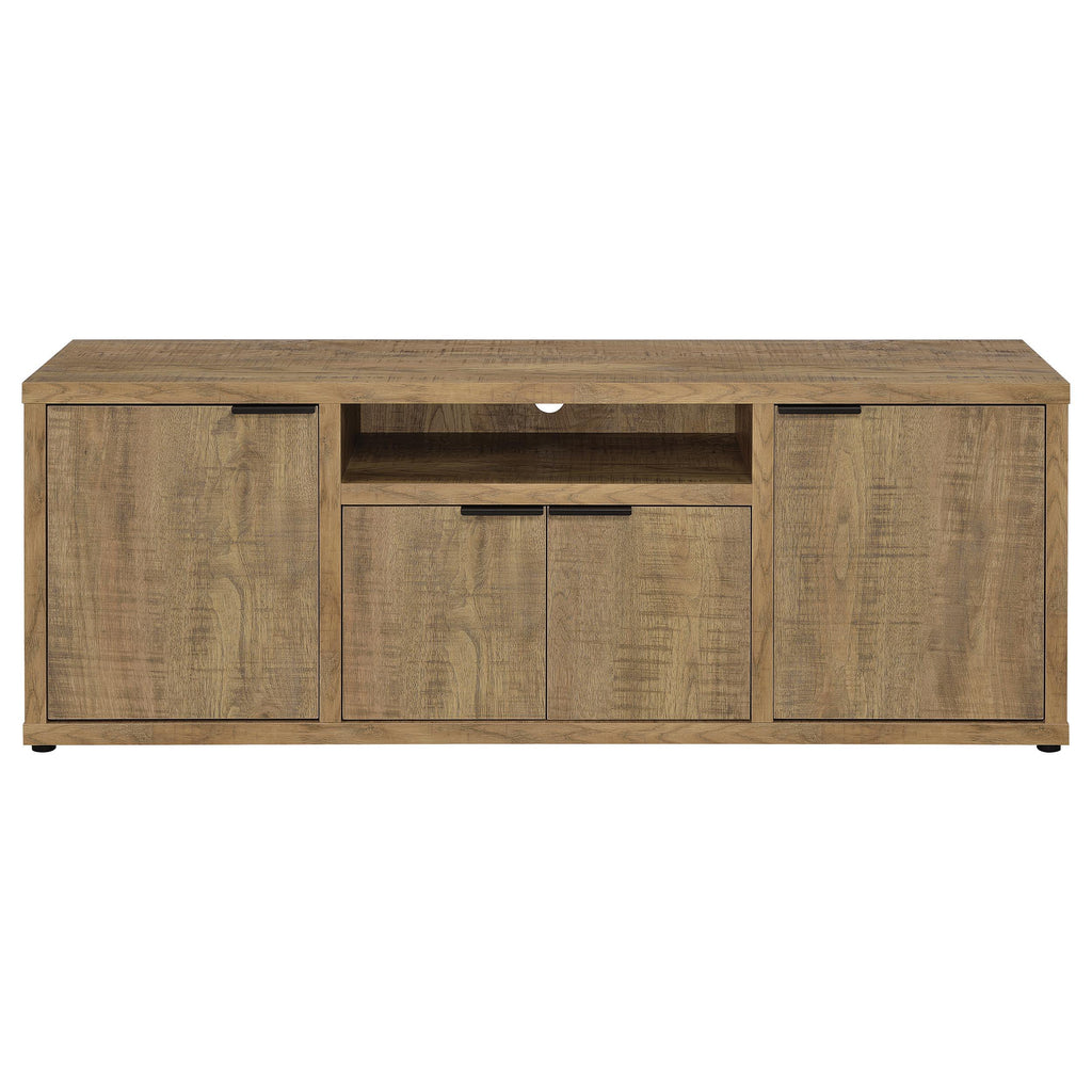 Transform your entertainment space into a rustic haven with our TV stand, drenched in a warm mango finish. Thoughtfully designed, it boasts six storage compartments ensuring all your media essentials have a designated spot. Two adjustable shelves offer flexibility, while the four doors keep your equipment and accessories concealed yet accessible. To further enhance your storage capacity and create a cohesive look, pair the stand with our matching media towers. This ensemble is more than just functional; it's an embodiment of rustic charm, ensuring your media zone is both organized and aesthetically pleasing.