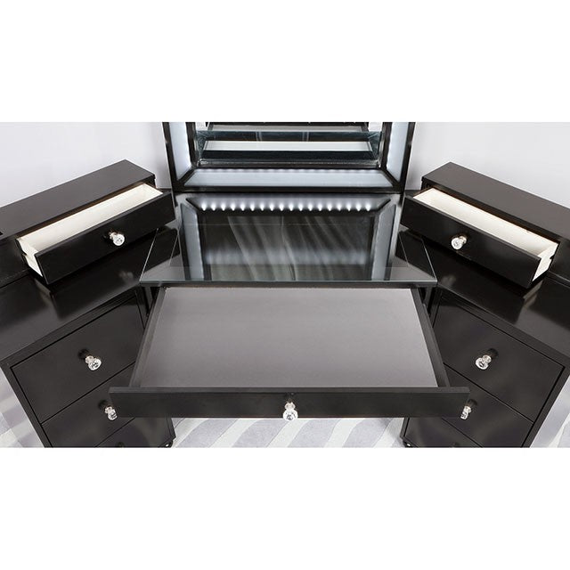 It's a gorgeous illuminated set that ensures the beauty of whomever sits upon the cushioned seat. With multiple drawers, the inclusion of storage is perfect for makeup gear making this an ideal setting for any woman, young or old.