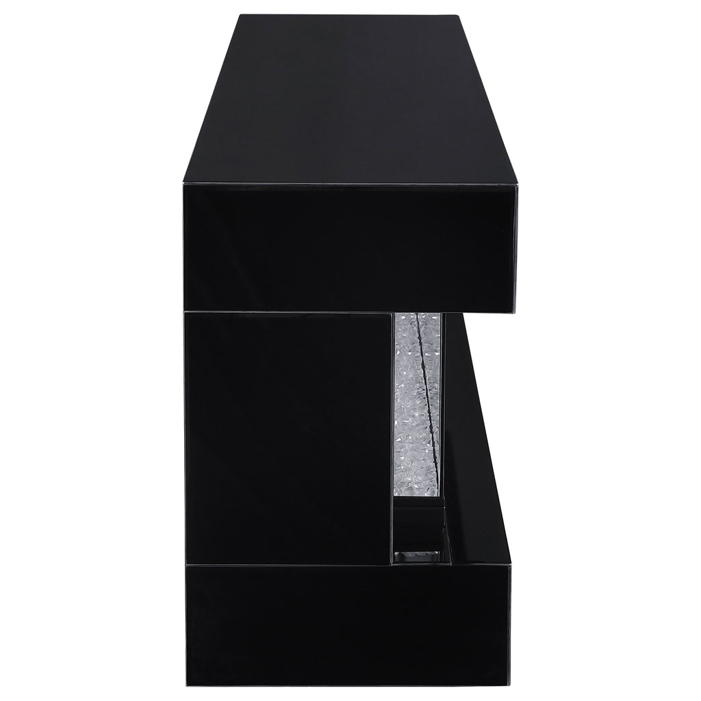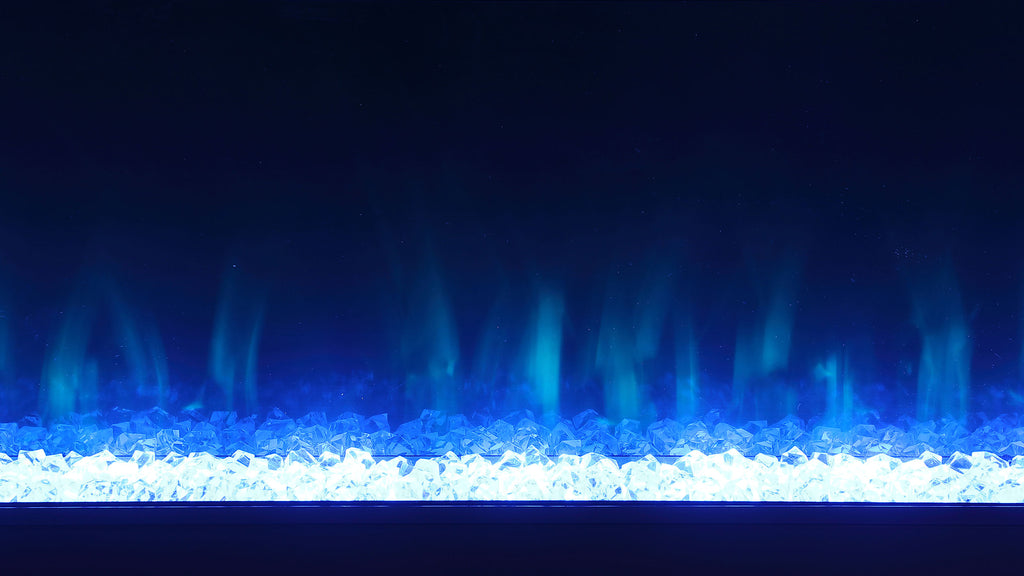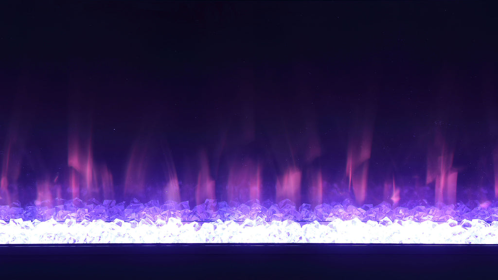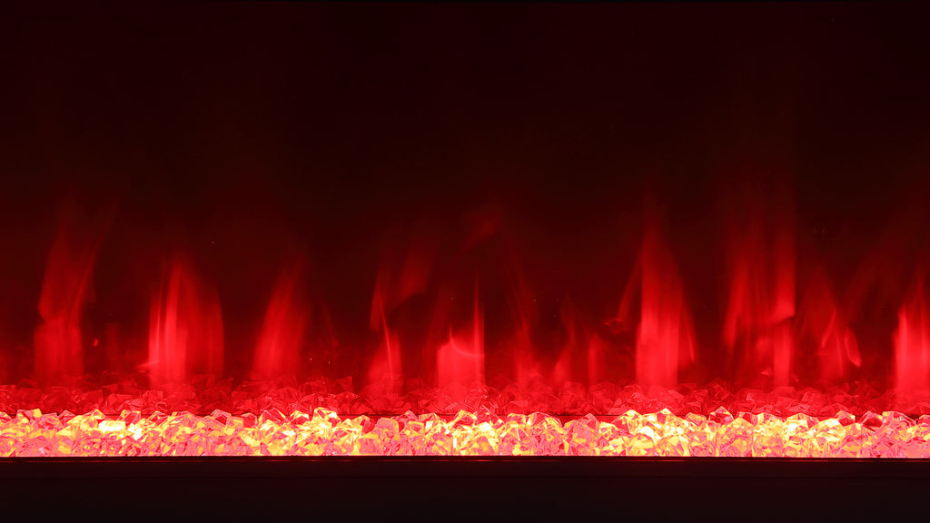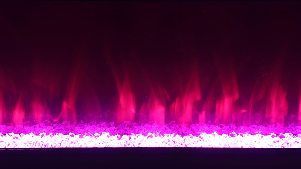 Emphasize ambiance with this modern TV stand, constructed from MDF and white glass, featuring a visual flame box insert. Its clean-lined silhouette is fresh and contemporary, making it a perfect focal point for TV entertainment or an ambient room setting. The visual flame box, made from a fire box and acrylic crystals, offers a realistic 3D flame simulator with multi-color settings, all controlled by a remote. Please note, this feature is purely for visual effect and does not generate heat. Easy to maintain due to its white glass material, this inviting TV stand accommodates televisions up to 72 inches and also includes a Bluetooth speaker control.