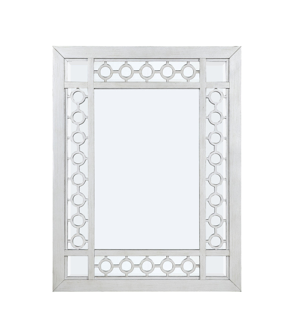 ACME Varian Mirror, Mirrored & Antique Platinum, 31" x 40"H Materials: Mirror, Wood, Poly-Resin, Composite Wood