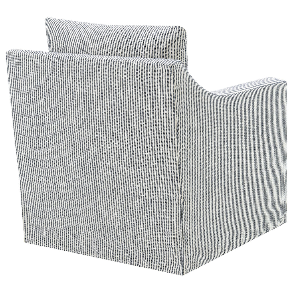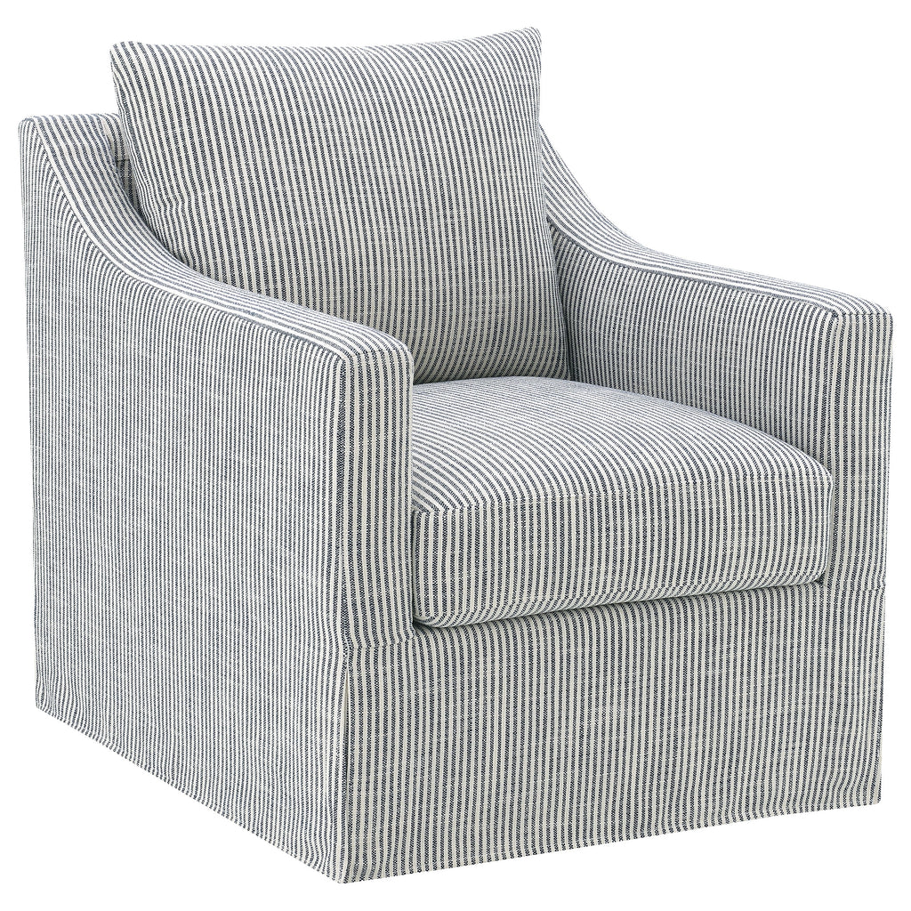 This swivel accent chair complements living room décor with its neutral fabric and streamlined silhouette. Perfect as lounge seating or an occasional chair, it offers a gentle, 360-degree swivel for relaxed conversation or quiet reading. Its plush seat and transitional flair enhance the comfort and style of your home, blending subtle elegance with everyday versatility.