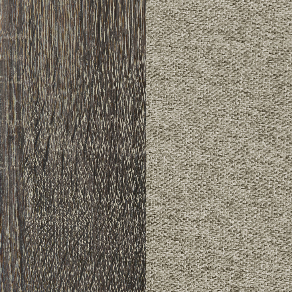 Introduce refined style in an approachable bedroom ensemble with this transitional wooden bed. With an upholstered headboard, it delivers impeccable comfort for lounging and relaxation. A brown oak wood grain finish pairs with laminate, delivering the perfect blend of style and durability. Tan fabric pairs with foam cushioning, delivering a complementary color tone that remains neutral in your bedroom. The bed features a tall headboard paired with a low footboard, creating an open, airy profile.