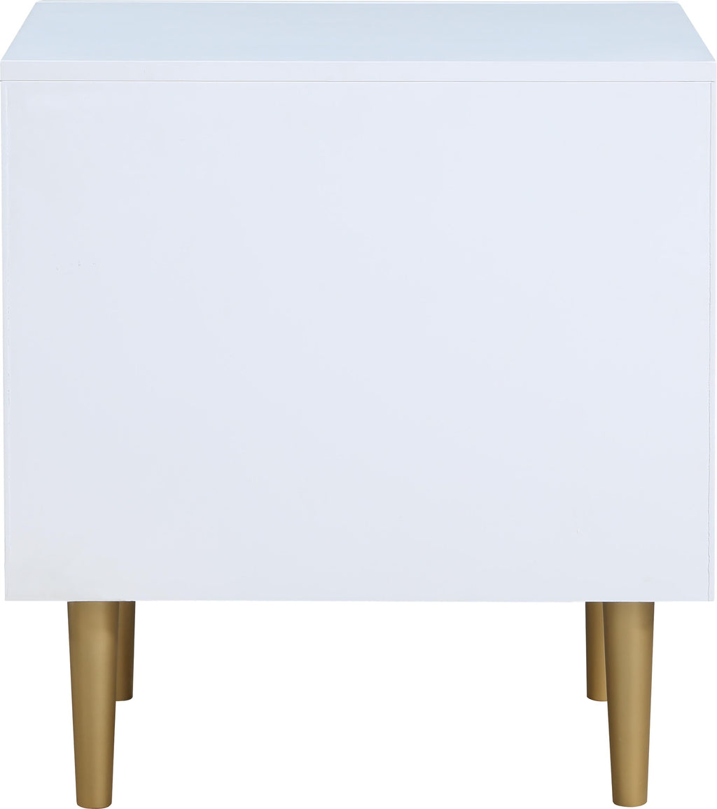 Watch your d?�cor cascade to new heights when you bring home this Zayne night stand. It features a white finish that sets an instant contemporary vibe in your space. Its brushed gold metal legs and handle add a sophisticated slant to the piece���s design, ensuring it���s a simple and easy fit with other modern pieces. Pair this unit with other items in the Zayne collection for a seamless presentation in your room.